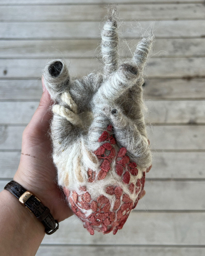 Sculpture de feutre et dentelle