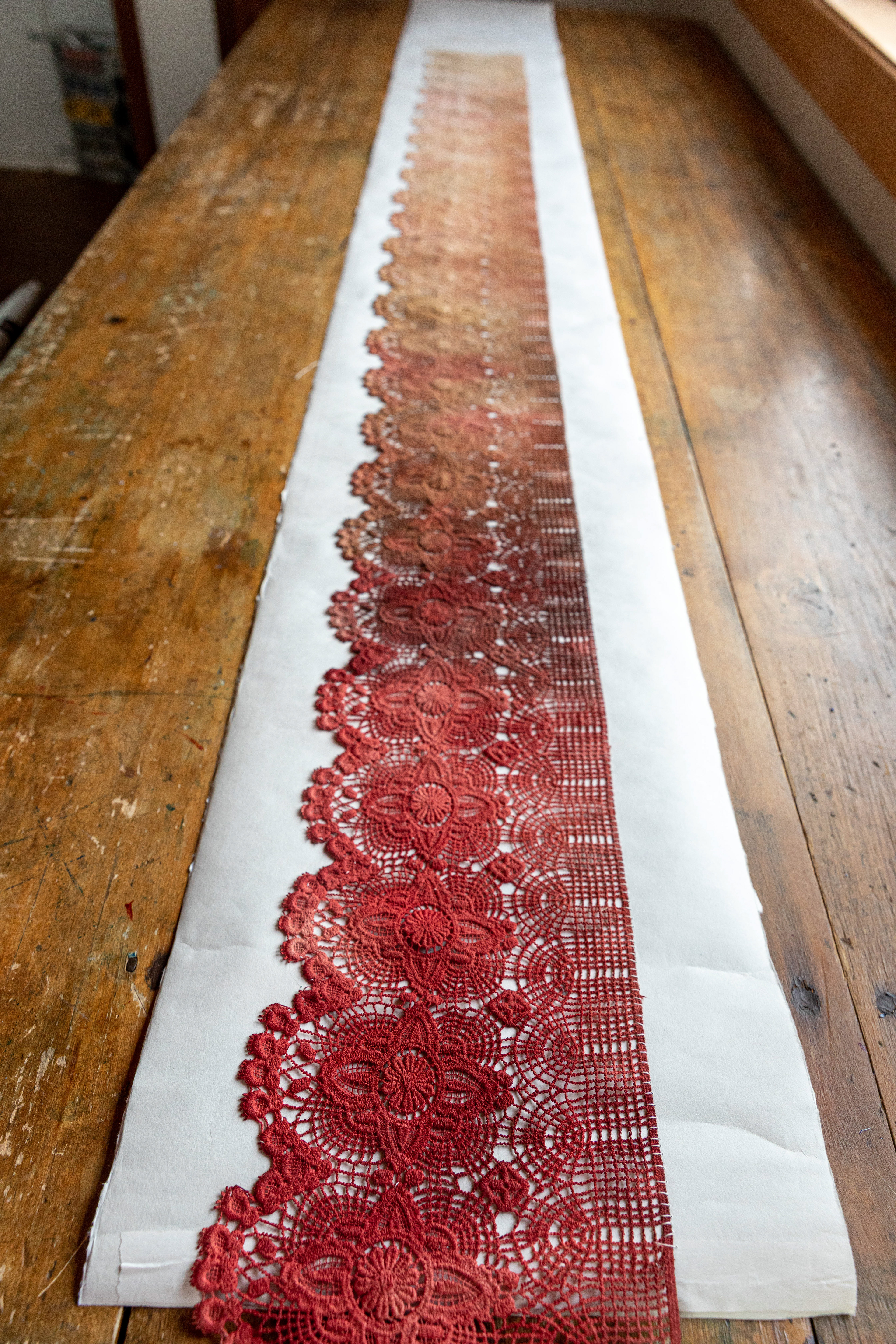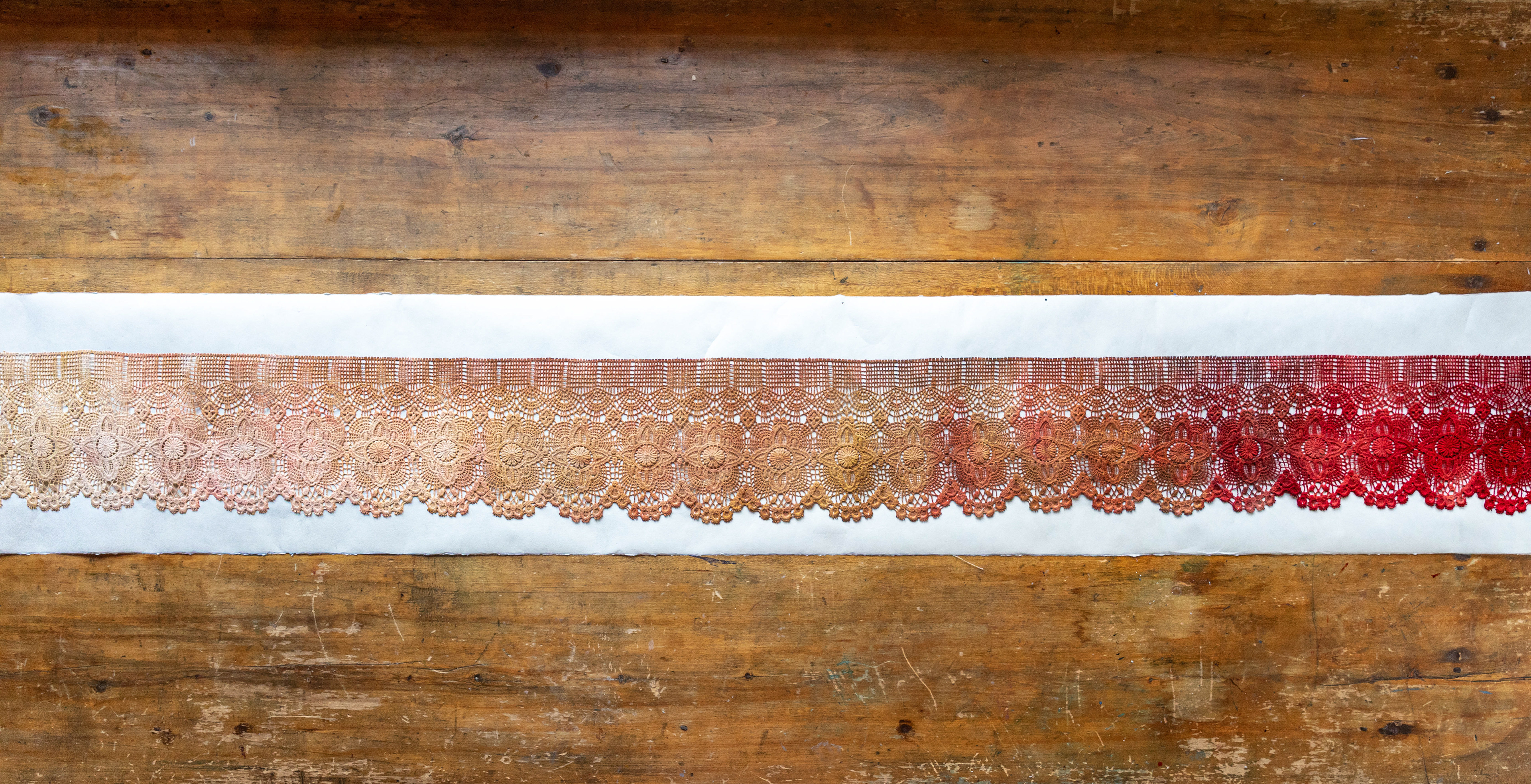 MATRIMOINE retrace le parcours de la violence faite aux femmes sous forme d'une ligne du temps de dentelle.
